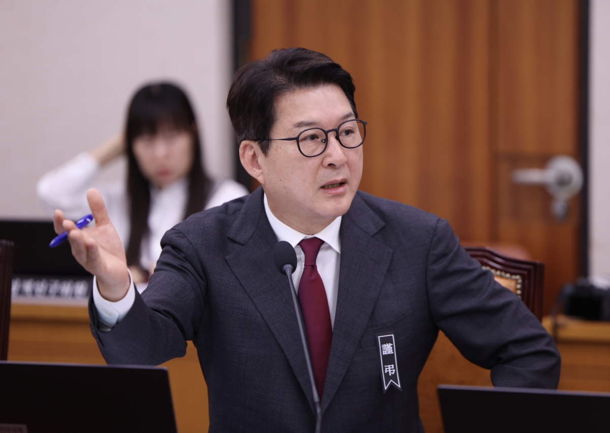 신동욱 국민의힘 의원이 지난달 14일 오전 서울 여의도 국회 법제사법위원회에서 열린 법무부 등에 대한 국정감사에서 정성호 법무부 장관에게 질의하고 있다. 2025.10.14. 뉴시스
