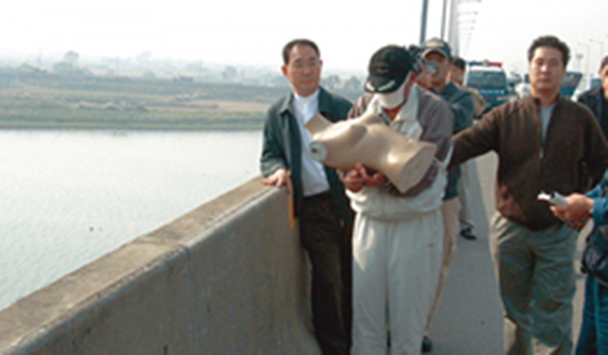 범인은 김포대교 밑에 몸통을 던져버렸다. 현장검증 모습