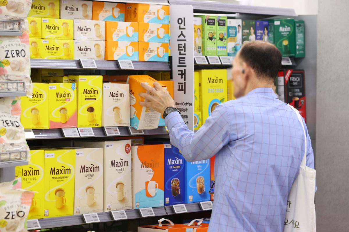 2일 서울의 한 대형마트에서 시민이 커피 제품을 고르고 있다. 9월 커피 소비자물가 지수는 1년 전보다 15.6% 올랐다. 연합뉴스