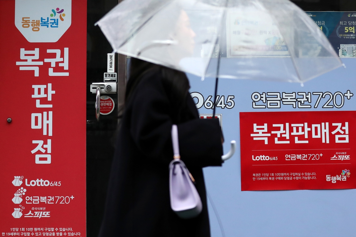 서울 시내 한 복권 판매점 앞으로 시민이 걸어가고 있다. 뉴시스