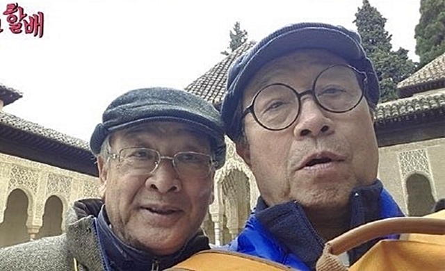 2014년 tvN 예능 ‘꽃보다 할배’에서 스페인 그라나다 알함브라 궁전을 함께 방문한 배우 이순재와 신구가 함께 사진을 촬영하고 있다. 2014.3.27 꽃보다할배 페이스북