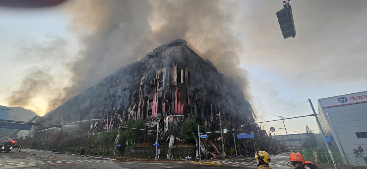 큰불이 잡히기 전까지 거센 불길과 뜨거운 열기로 건물 외벽 샌드위치 패널은 형체를 알아볼 수 없을 만큼 휘어지고 종잇장처럼 밑으로 떨어졌다.