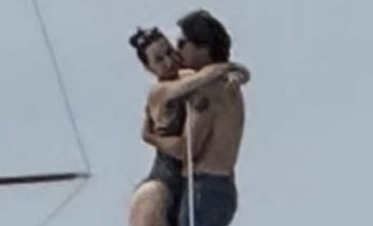 미국의 팝스타 케이티 페리(왼쪽)와 쥐스탱 트뤼도 전 캐나다 총리가 요트에서 수영복 차림으로 데이트를 즐기다 포옹하고 있다.