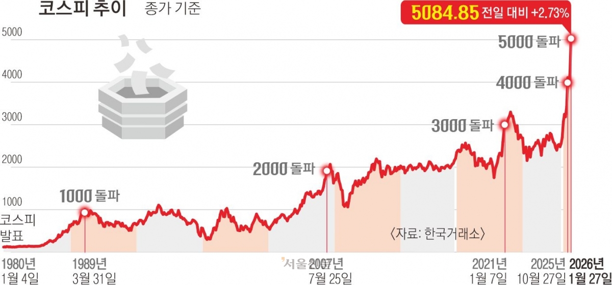 코스피 종가 사상 최초 5000 돌파