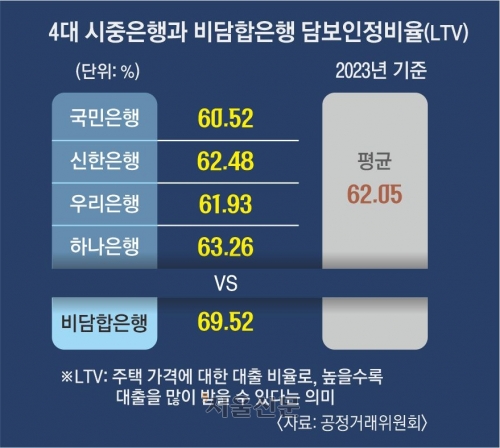 공정위는 4대 은행이 부동산담보대출 시장에서 약 60% 점유율을 차지하는 만큼, LTV가 유사한 수준으로 유지되면 차주가 거래 은행을 고르기 어려워지고 필요한 자금 조달에도 제약이 생긴다고 봤다. 공정위에 따르면 2023년 기준 4대 은행 평균 LTV는 62.1%로 비담합 은행 평균 69.5%보다 7.5%포인트 낮았다. 공장·토지 등 비주택 부동산에선 격차가 8.8%포인트까지 벌어졌다. 공정위는 LTV가 낮아질수록 차주가 추가 담보를 마련하거나 신용대출 등 다른 수단을 찾게 되고, 결과적으로 자금 조달 비용이 높아지는 효과가 발생할 수 있다고 지적했다.