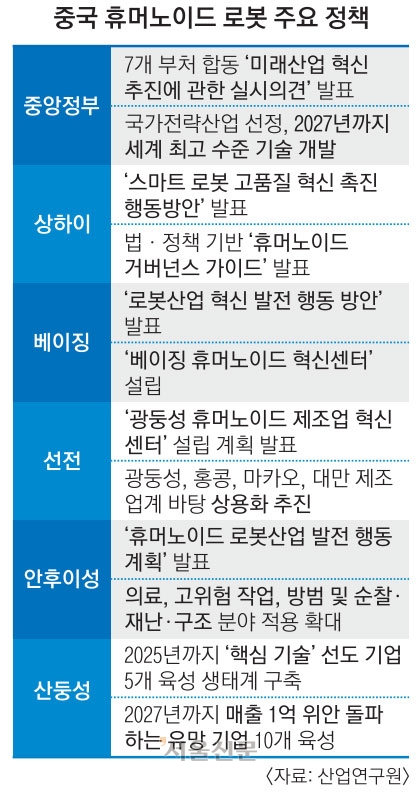 중국 기업들이 머신비전·AI를 결합한 휴머노이드 개발에 뛰어든 것은 중국 정부가 지난해 휴머노이드를 국가전략산업으로 선정하고 올해까지 휴머노이드의 기술 혁신 산업 육성, 보안, 거버넌스 구축 3가지 목표를 제시하며 적극 지원에 나섰기 때문이다. 여기에 상하이, 베이징 등 각 도시에서도 자체 지원 사업을 운영하며 지속 가능한 휴머노이드 생태계를 구축하고 있다.