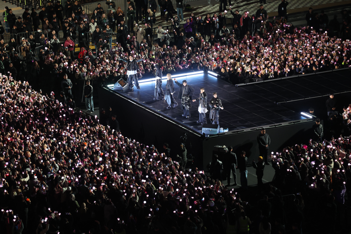 그룹 방탄소년단(BTS)이 21일 서울 광화문 광장에서 정규 5집 ‘아리랑’(ARIRANG) 발매를 기념해 무료 공연 ‘BTS 컴백 라이브: 아리랑’(BTS THE COMEBACK LIVE|ARIRANG)을 열고 있다. 연합뉴스